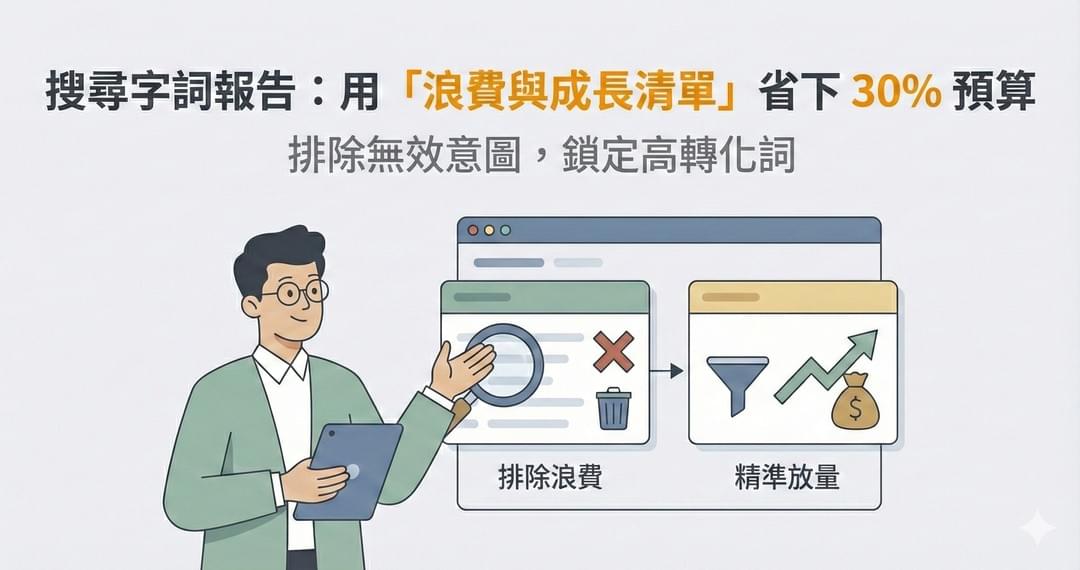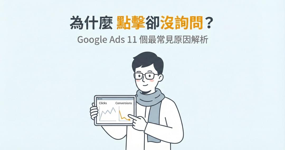 February 6, 2026查看更多...先講真相:你不是在「出價」,你是在「餵資料給系統」 以前手動 CPC 的世界,大家會把優化想成「調出價」。但現在多數帳戶都在用自動出價(Maximize Conversions / tCPA...January 21, 2026查看更多...你缺的不是點擊,是「可成交的意圖+承接」 「有點擊但沒詢問」通常不是 Google 壞掉,也不是你的產品沒人要。我們看過太多企業每個月燒掉 5 萬、10 萬在無效點擊上,這不是因為廣告沒效,...January 20, 2026查看更多...你不是在「裝追蹤」,你是在決定 Google 會學什麼 在自動出價時代,Google Ads 的本質是一個「學習系統」。 正確訊號: 系統會越跑越像樣,幫你找到真正的客戶 。錯誤訊號(雜訊...January 14, 2026查看更多...先講觀念:關鍵字 ≠ 搜尋字詞,你買到的是「意圖」 很多人以為自己在買「關鍵字」,但 Google Ads 真正觸發廣告的是使用者實際輸入的句子,也就是「搜尋字詞(Search terms)...常見問答
